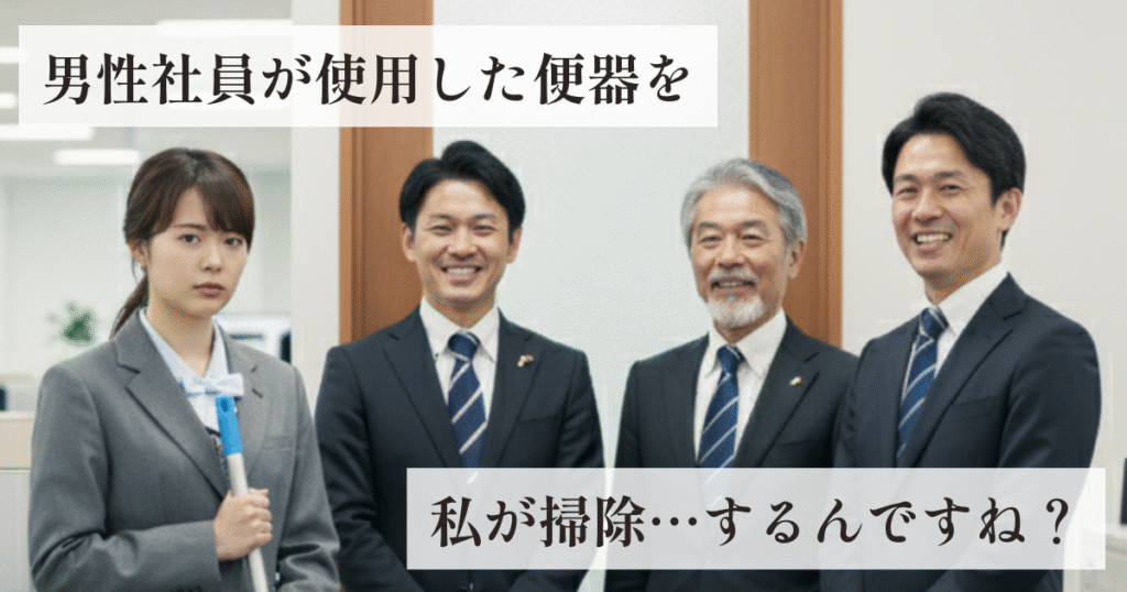 しかも、この男女共用便所の掃除は、毎朝女性事務員が担当する。つまり、今日知り合ったばかりの男性社員たち(他は奥様と女性事務員と私)が使って汚したトイレを、私が毎日掃除するということです。いや、さすがにそれは…キツイわ。