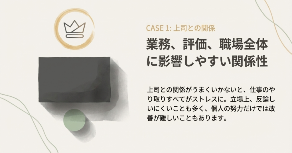 本記事では、上司・先輩・同僚・後輩といった関係別に、 対処法と見切りをつけるべき判断基準をまとめました。人間関係の悩みを可視化することで、「このまま続けるべきか」「別の環境を考えてもいいのか」を感情ではなく、自分の軸で考えられるようになるはずです。