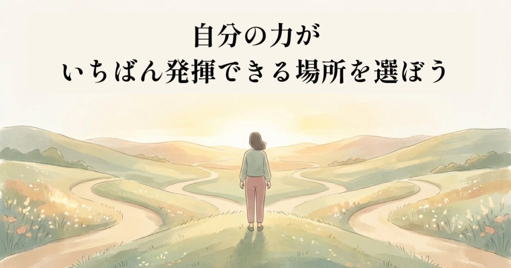 今の場所は、自分の力を発揮できる環境でしょうか。それとも、無理をしないと成り立たない環境でしょうか。もし後者だと感じるなら、これまで整理してきた判断軸をもとに、今の職場を一度客観的に見直してみてください。合わなかったのは仕事ではなく、環境だったと気づくきっかけになるかもしれません。