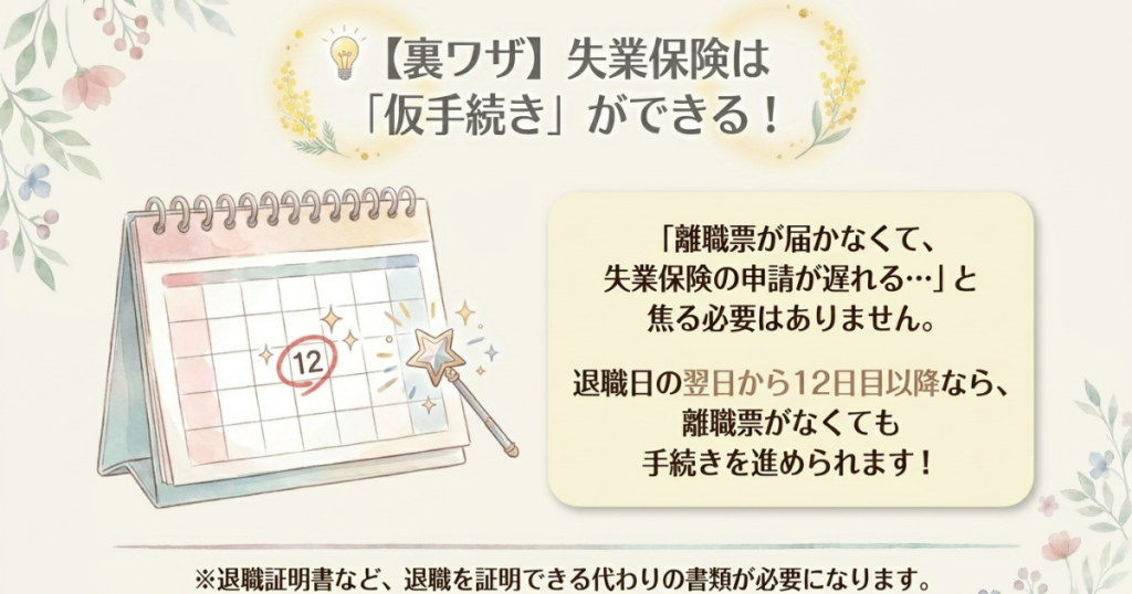 無職期間中は、失業保険が頼りという人も多いかと思います。離職票が届かず申請ができなければ、支給が始まるのもそれだけ遅くなってしまいます。そんなときに使えるのが「仮手続き」です。これは、離職票が手元になくても、先にハローワークで失業保険の申請を進めておける制度のこと。離職票が届かず、ただ時間だけが過ぎてしまう…ということを防げます。
