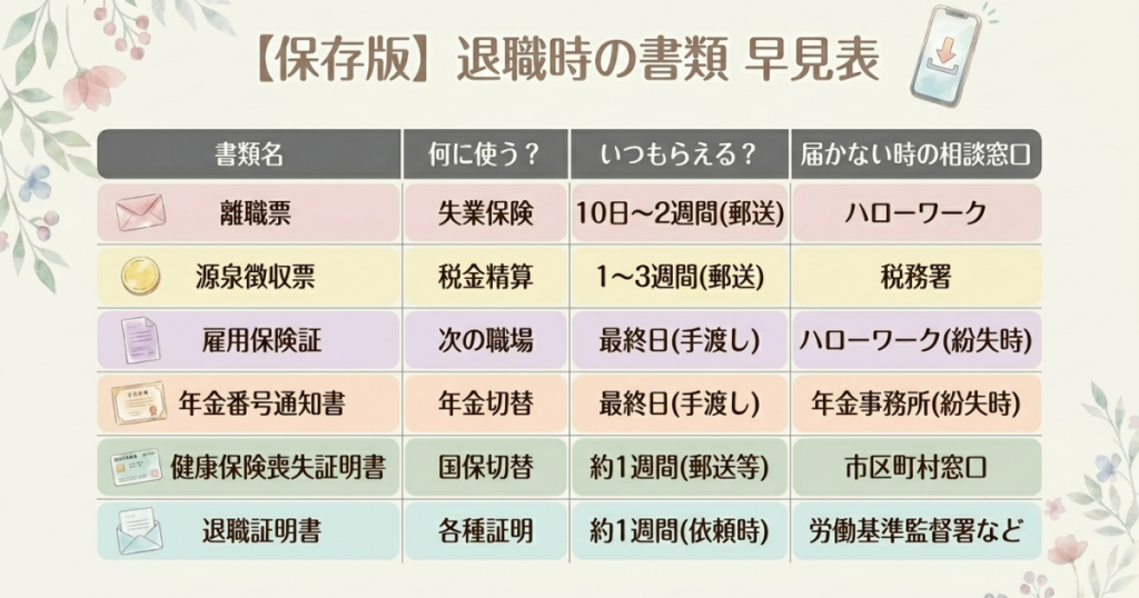 退職時に受け取る6つの書類