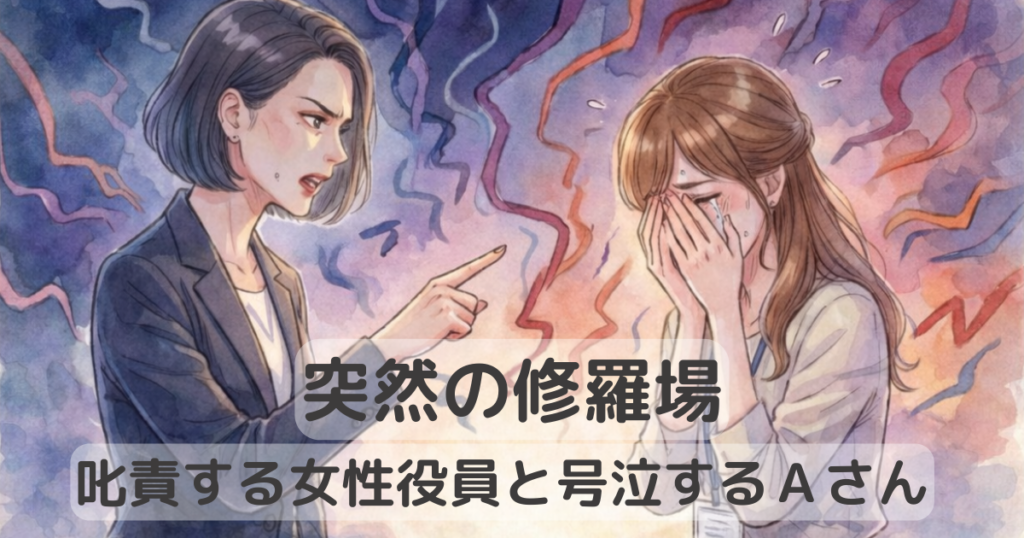 感情的なやり取りが続き、Aさんは泣き叫び、女性役員も一歩も引きません。職場とは思えない、修羅場のような光景でした。